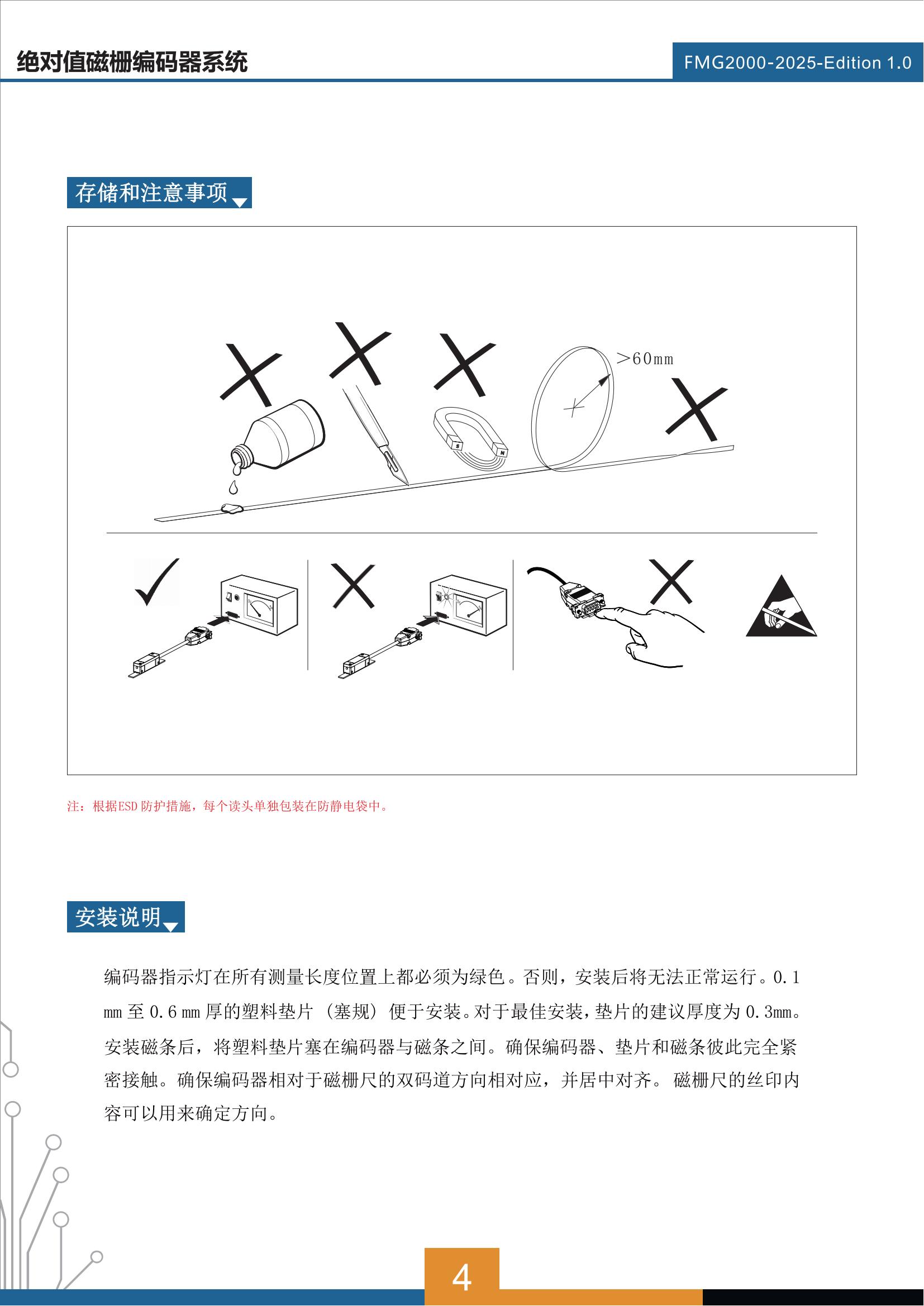 The magnetic scale ruler is composed of incremental code channels with a 2mm pitch and absolute value code channels. Therefore, during installation and use, it is necessary to match the direction with the encoder. The encoder transmits the absolute position information through the selected communication protocol with a low delay and short response time.