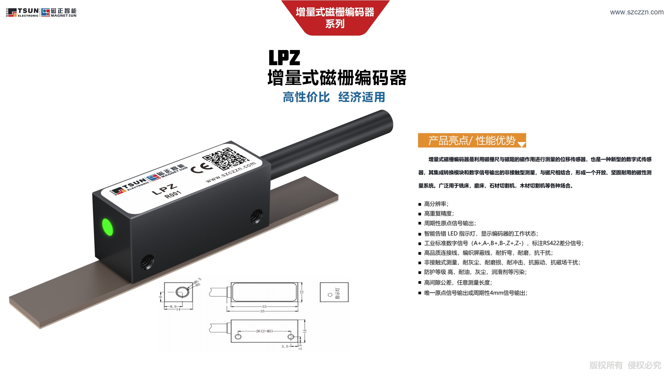 可订制参数:分辨率,计数方向,线缆长度。