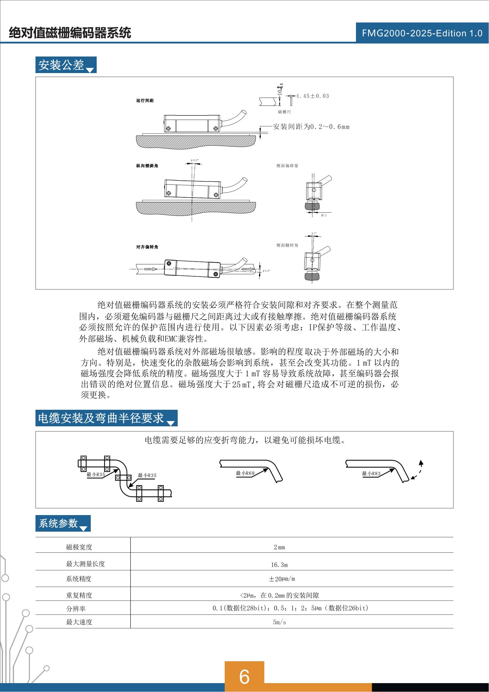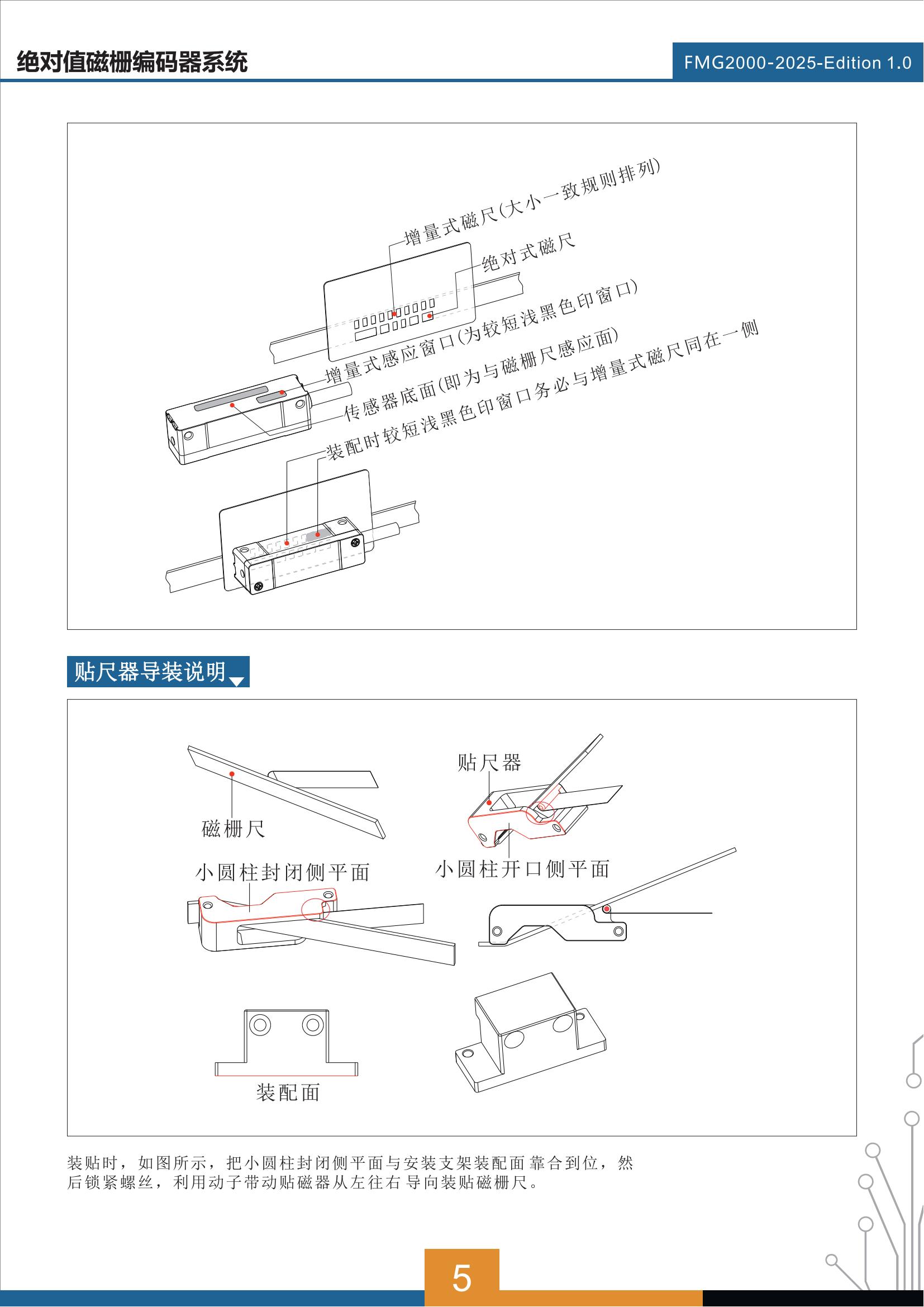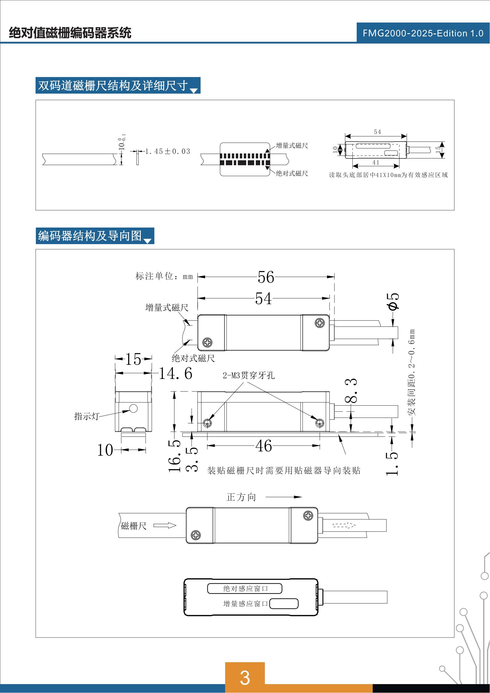 磁栅尺是由2mm极距构成的增量码道和二进制编码构成的绝对值编码码道组成。因此,在安装使用过程中,与编码器之间是需要匹配方向的。编码器以较低的延迟和较短的响应时间,将绝对位置信息通过选定的通信协议传输出去。