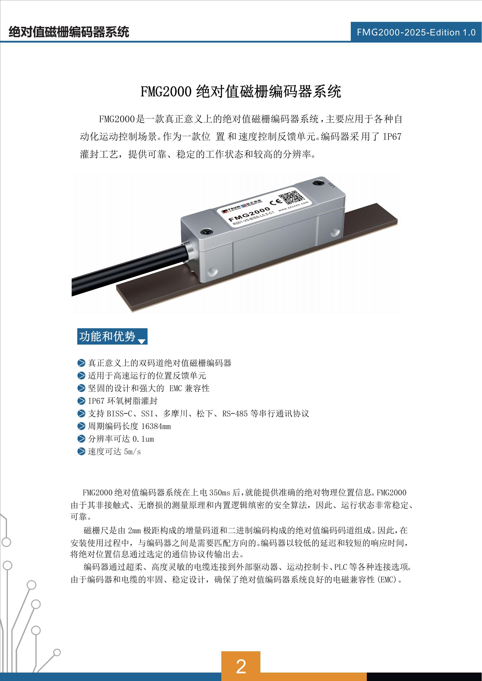 FMG2000绝对值编码器系统在上电350ms后,就能提供准确的绝对物理位置信息。FMG2000由于其非接触式、无磨损的测量原理和内置逻辑缜密的安全算法,因此、运行状态非常稳定、可靠。