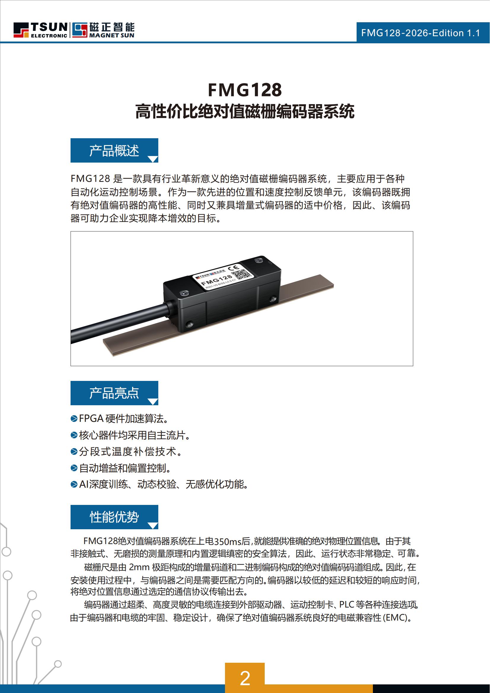 FMG128绝对值编码器系统在上电350ms后,就能提供准确的绝对物理位置信息。由于其非接触式、无磨损的测量原理和内置逻辑缜密的安全算法,因此、运行状态非常稳定、可靠。